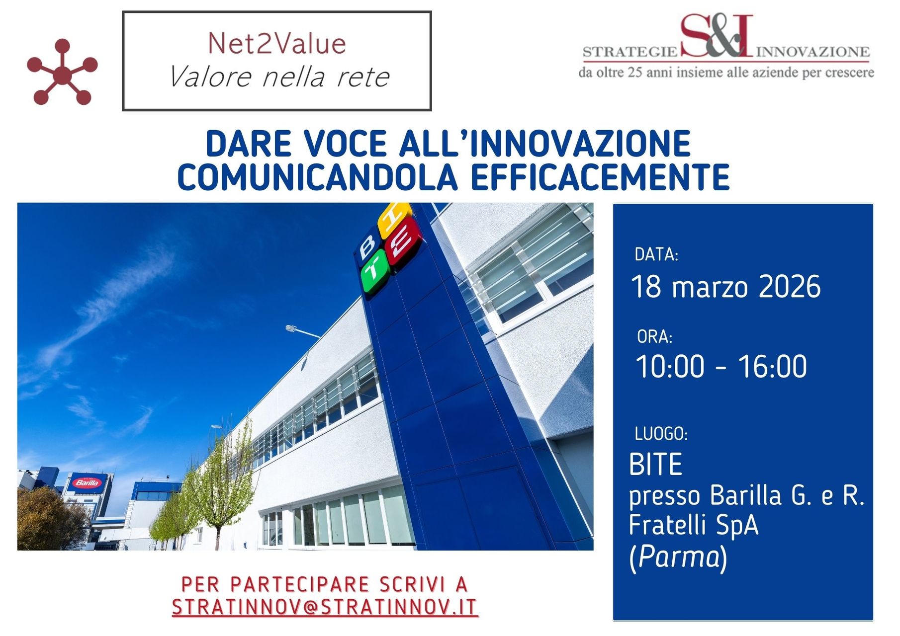 Net2Value 2026 - "Dare voce all'innovazione comunicandola efficacemente " - 18 marzo 2026 presso BITE - Barilla G. e R. Fratelli SpA (Parma)