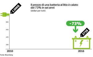 A bloccare il mercato è anche il prezzo delle vetture: in media si aggira sui 30 mila euro, su cui pesa fino al 50% la batteria. Secondo uno studio di Bloomberg, tuttavia, dal 2010 a oggi il costo delle batterie al litio è diminuito del 73% — passando da 1.000 dollari per kWh a 273 dollari nel 2016 — e la previsione è che i prezzi caleranno ulteriormente nei prossimi vent’anni. Questo crollo è dovuto anche ai produttori di auto elettriche che per rendere più abbordabili le proprie vetture puntano a far scendere i prezzi delle batterie fino a 124 dollari per kWh. Le batterie, inoltre, saranno meno ingombranti, più leggere e più veloci da ricaricare.