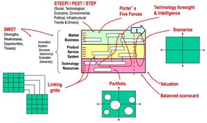 All'interno di questo approccio è possibile integrare altri strumenti propri della strategia aziendale, ad esempio la matrice SWOT, il modello PEST e le 5 forze competitive di Porter, così come la Technology Intelligence, la balanced scorecard e l'analisi di scenari: considerati all'interno di una roadmap riescono a esprimere al massimo grado la loro potenzialità, acquisendo la variabile "tempo", essenziale se si considera la connotazione dinamica del mercato.