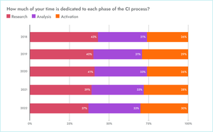 Secondo il nuovo “2022 State of Competitive Intelligence Report”, edito lo scorso mese da Crayon e SCIP (Strategic & Competitive Intelligence Professionals Association), la tecnologia sta sempre più trasformando il modo di effettuare Competitive Intelligence (CI): le interviste e i sondaggi condotti su un campione di più di 1.200 professionisti di CI mostrano come i sistemi di Artificial Intelligence e Deep Learning riescono a ottimizzare e velocizzare la fase di ricerca dei dati, liberando spazio alle funzioni di CI che possono dedicarsi con più attenzione ed efficacia alle attività di interpretazione e analisi dei dati – più del 15% del tempo rispetto al 2018.