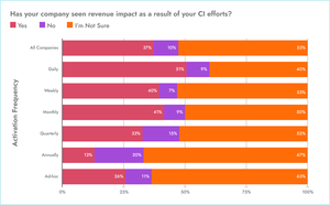 Un risultato che si traduce anche sulla capacità - e sulla consapevolezza - della Competitive Intelligence di avere un impatto sulla performance dell’azienda: vi è infatti una correlazione tra i risultati aziendali e gli sforzi della CI che risulta evidente dal sondaggio. Laddove la funzione di CI riesce a svolgere la sua attività in modo rapido, costante e al passo con le esigenze aziendali, tutta l’organizzazione ne trae beneficio.